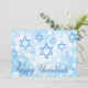 Este design de feriados mostra a Estrela de David como decorações com o texto "Happy Hanukkah" na tipografia moderna. #hanukkah #chanukah #feriados #sazonal #festivo #estrela #starofdavid #azul #decoração moderna #design #designer #saudações #cartões #cartões #estationery