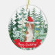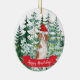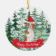 Um Enfeites de natal de Cão Brittany, com data legal, foi colocado em um fundo de pinheiros e pinheiros com a mensagem de feriado "Happy Howlidays". Visite nosso compro para ver uma grande variedade de pães de cão