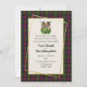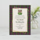 O convite para o casamento do clã escocês Hargis feito no clássico padrão colorido de xadrez tartana colorida com tom de ouro, com uma área de texto decorativo de marfim. Gráficos de duas cabeças de unicórnio com um punho entre elas, decoram o topo do convite. Personalize o texto personalizado para se adequar ao seu casamento temático em terras altas.