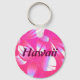 Chaveiro de design, cor-de-rosa-claro e flor branca, um impressão floral havaiano de estilo vintage e texto do Havaí, o 50º estado dos EUA