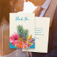 Recém-casados cartões de agradecimentos com flores havaianas e imagem de abacaxi. Flores frangipani bonito e um hibisco e um pássaro-do-paraíso rodeiam dois ananases no centro deste design em placas planas com texto personalizável em frente e atrás. Escrito azul-aqua com "obrigado" na frente e uma mensagem e assinatura no verso. Escolha opções impressas ou descarregáveis, ou ambas.