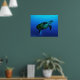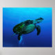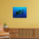 Poster com uma Tartaruga do Mar Hawksbill nadando nas claras águas azuis do Mar de Coral ao largo da costa do QLD, Austrália.