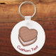 Biscoito em forma de coração cheio com creme cor-de-rosa. Cor de fundo personalizada. Texto personalizado de ambos os lados.