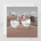 Colourful artwork of Sussex chickens in the English countryside, with an old barn and some oast houses in the background. Perfect for anyone who loves folk art.