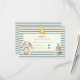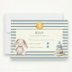 This charming response card features a delightful watercolor illustration of a soft stuffed bunny, a cheerful sun, and a stacking ring toy, all set against a backdrop of classic blue and cream stripes. It's the perfect way to gather RSVPs for your little one's upcoming baby shower. The design evokes a sense of gentle joy and playful innocence, making it an ideal choice for welcoming a new baby. The clean layout ensures your guests can easily fill in their name and indicate their attendance status with a simple check. Let this sweet card set the tone for a memorable and heartwarming celebration.