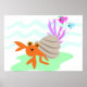 Um caranguejo-eremita-laranja giro rastejando pela sua carapaça. Esta design parece realmente eficaz nestes Poster
