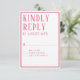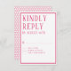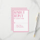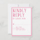 Este cartão de resposta RSVP coordena-se com o pacote de convites de casamento e é para os seus convidados preencherem e regressarem. Personalize facilmente suas informações em nosso modelo simples. Você pode personalizar a cor da borda, fonte e padrão de cor de fundo usando as ferramentas simples fornecidas. Mostrado em rosa brilhante e rico. Estilo moderno e simples com um serif, design de fonte com boné.
