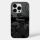 © Sunny Mars Designs. Hibiscus: Cobrir de Telefone Preto para Mala-Amada - Este cobrir de telefone floral de gótico preto, completamente personalizável, apresenta um bonito, elegante preto abstrato gótico e cinza belas design florais de hibiscus floral sobre um fundo de cinza escura. Personalize-o adicionando seu próprio nome ou outro texto.