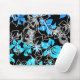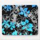 O impressão tropical do vintage inspirou aloha pelas camisas dos anos sessenta e dos anos setenta. Uma mistura colorida de transições dos azuis através do hibiscus floresce em um fundo de preto, de cinzas & de branco. Este design vem em diversos colorways.