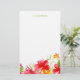 Artigos de papelaria feitos sob encomenda personalizados com ilustração floral colorida - flores brilhantes do hibiscus e folhas tropicais vermelhas e alaranjadas do verde.