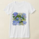 Há algo especial sobre as flores da Hydrangea, elas podem ser uma bela sombra de azul, assim como outras cores deliciosas. Nessa camisa, uma colagem de imagens de hydrangea com pequenas estrelas como formas em ouro e ouro, cria um design bonito.