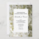 Convide convidados com o elegante convite para Janto de ensaio de Hydrangea branca. Estes convites personalizados à festa de pré-casamento floral pré-janta apresentam uma fotografia floral aproximada de um florescimento branco de flor de hydrangea. Inpo perfeito para um evento bonito de festa de jardim de verão. Disponível como um convite impresso para envio por correio ou como um download digital para fácil compartilhamento digital online.