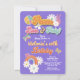 Paz, Amor e Festa com este convite de aniversário hippie. Apresenta flores mod e um fundo de roxo no festival de música de 1960 ou 70. Todas as formulações podem ser alteradas para ajustado das suas necessidades. Excelente para qualquer idade.