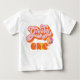 Hippie Groovy One Baby shirt com um sinal de paz colorido para um rapaz ou uma rapariga com um sentimento de 1960 ou 1970. Perfeito para uma primeira primeiro aniversario!