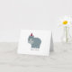Um cartão de aniversário bonito com um hipopótamo vestindo um chapéu de festa.