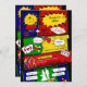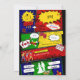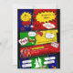 Comemore seu solteiro ou baixo de festa de solteira em estilo com este livro de histórias em quadrinhos modernos e estético. O convite é colorido e conta uma história de quadrinhos retrô com bolhas de fala. Mostra uma história com anéis, festas, las vegas, cartas, jogos, festas, tudo fica em Vegas e uma silhueta de casais de casamento. Personalize-o com seus detalhes, seu monograma para sua extraordinária comemoração.