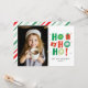 Este design de Natal gráfico mostra sua foto favorita com o texto "Ho Ho" em tipografia colorida e divertida, destacada com flocos de neve e presentes em vermelho, verde e branco. Abaixo do texto personalize com seu nome de família e ano, editando o texto na caixa de texto fornecida. #natal #feriado #sazonal #festivo #alegria #feliz #hoho #abençoada #elegante #na moda #inverno #neve #floco de neve #snowflake #snowflake #snowflake #snowflaly #joy #fotografia #foto #adyourown #diy #personalizado #personalizado #nome #moderno #tendências #moda #branca #green #stripes #candystripes #candycane