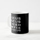 Uma bruxa assustadora voando com uma vassoura, e o ditado bonitinho, Hocus Pocus, preciso de café para focar, fazer este é um acessório ou presente divertido para o Halloween.