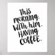 "Esta manhã. Com ele. Ter café" - a resposta quando se para descrever o paraíso. Emprestado da citação do Johnny Cash. Tipografia negra escrita à mão sobre um fundo branco nítido para uma aparência moderna e mínima.