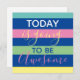 Texto moderno em branco, amarelo, azul e rosa com padrão listrado.