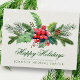 Tipografia de Feriados Felizes. Watercolor Holly, Berry e Pine. Design de Natal clássico. Adicione o logotipo da sua empresa. Este cartão destina-se especificamente à prática médica para enviar clientes para os feriados. Disponível aqui: http://www.zazzle.com/store/selectpartysupplies