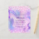 Um convite feminino da Quinceañera. Na frente: Um fundo holográfico colorido em roxo, rosa. Decorado com confete cor-de-rosa penteado. Personalize e adicione um nome e detalhes da parte. O nome é escrito com um script de estilo manuscrito, letras cor roxa. 1 folha = 1 convite impresso de borda a borda.