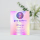 Um convite de festas giro e feminino Doce 16. Um fundo holográfico colorido em roxo, rosa, amarelo, azul. Decorado com uma bola colorida de discoteca. Texto: Partido do Vamos! Personalize e adicione um nome e detalhes da parte. O nome é escrito com um script de estilo manuscrito, letras cor roxa. 1 folha = 1 convite impresso de borda a borda.