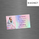 Um magnético moderno e elegante Salve a data de uma festa de aniversário (qualquer idade). Fundo holográfico, cor-de-rosa, verde-hortelã. Personalize e adicione uma foto, data e nome.