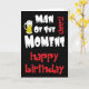 Um cartão de aniversário colorido e impressionante para um homem. Apresentando um copo de cerveja, a mensagem diz "Homem do Momento. Feliz Aniversário". A mensagem está em texto branco e vermelho contra um fundo preto contrastante. Ponha seu dentro especial de Aniversário.