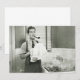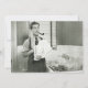 Homem lavando pratos na cozinha, cachimbo nos dentes, (B&W) | George Marks | ID do ativo: 57539450