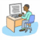 Vinheta mostrando um negro trabalhando em um escritório em seu computador.