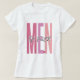 Um design de camiseta ousado e empoderador com a palavra "HOMENS" em letras grandes, gradiente cor-de-rosa, com a frase "De fé" escrito através do centro. Um pequeno símbolo cardíaco no fundo reforça a mensagem do amor e da devoção. A tipografia moderna e as cores de gradiente criam um visual impressionante, representando força e fé inabalável.