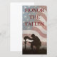 Honra os caídos com uma última saudação. Em homenagem aos nossos membros mortos das forças armadas. Os joelhos soldados em frente ao túmulo do camarada caído. Ao fundo, a bandeira dos EUA.