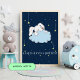 NewParkLane - Cartaz para Berçário Sweet, com um adorável coelhinho bebê dormindo em uma nuvem entre as estrelas, com a citação "uma soneca é sempre uma boa ideia!" em tipografia de letra cursiva divertida.