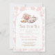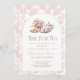 Convide convidados para uma festa de chá de chá de fraldas refinada com este convite "Hora do Chá". Apresentando delicadas flores cor-de-rosa, bules antigos e um layout mínimo moderno, este cartão conta a história da graça e charme de eterno — perfeito para uma celebração inspirada em coquetes.