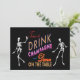 Este divertido, flerto e colorido Convite de Halloween tem esqueletos dançando na mesa, e o ditado "time to Drink Champagne and Dance on the Mesa".
