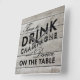 "Hora de beber champanhe e dançar na mesa" acentua esse relógio bonito na parede.