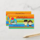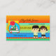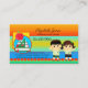 Cartão de visita com um design divertido colorido com material escolar e crianças felizes. Bonita para um jardim de infância ou professor primário.