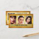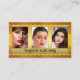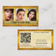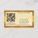Um cartão de visita elegante com 3 fotos de sua escolha (opcional), enquadrado por um design de ouro estilizado na frente. No verso há espaço para compromissos, assim como seu código QR personalizado. Uma bela cartão de visita para um belo artista ou maquiador.
