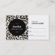 Coordena-se com as Cartões de visitas de Impressão Na moda e Chic até 1201AM. Um belo fundo da impressão leopardo torna-se moderno e chique quando combinado com um círculo negro para guardar o seu nome ou nome comercial para um logotipo instantâneo. Estes cartões de na moda são perfeitos para salões, cabeleireiros, maquiadores, unhas, bares de beleza e muito mais. © 1201AM CREATIVE