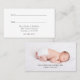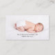 Cartão de visita simples do pediatra, com uma foto de bebê no verso e informações de compromisso na frente. Substitua o exemplo de foto por sua própria foto.