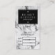 Impressão de textura de mármore branco elegante e simples com placa modelo de compromisso personalizável de design de joias de sotaque pretas.