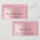 Dê uma boa impressão com este cartão de compromisso chic com gotas de brilho sujo cor-de-rosa e seu nome em um script de tendência contra um fundo de folha falsa rosa. Perfeito para salões de beleza, maquiadores, cabeleireiros e estéticos.