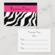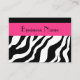 Rosa quente e uma impressão zebra dão a este estilo retrógrado do cartão de compromisso. Personalize essas cartões de visitas para atender às suas necessidades, adicione ou exclua texto, altere o tamanho da fonte, o estilo da fonte, etc...Use essas cartões de visitas para um salão, salão de cabelo, spa, salão de unhas, cosmetólogo, maquiador, moda, uma boutique, design de interiores, pequena empresa, etc.... O design é de arte original.