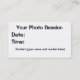 Cartão de visita/Fotografia com data e hora da sessão fotográfica, saia da multidão com cartões de visitas personalizados. Carregue seu próprio logotipo, foto ou gráfico ou use um modelo pré-existente. Os cartões de visitas Zazzle são impressos profissionalmente para todas as suas necessidades de rede. Personalize cada lado do seu cartão de visita e escolha entre centenas de estilos de fonte gratuitamente!