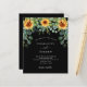 Um fundo preto decorado com girassóis, eucalipto verde. Personalize e adicione seus nomes e detalhes da festa.
