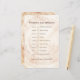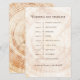 Mantenha seus convidados informados e sua celebração correndo bem com este cartão de dia de casamento dos anéis de madeira rústicos. Apresentando um fundo natural de anel de árvore aliado a tipografia limpa, este agendamento elegante mostra sua cerimônia, recepção e eventos chave de casamento de uma forma clara e na moda. Perfeito para distribuir aos convidados na cerimônia, colocação em mesas de recepção ou inclusive em bolsas de boas-vindas. Totalmente personalizável com seus nomes, data e detalhes do evento. Um complemento prático e belo a casamentos rústicos, boho, florestas ou celeiros.