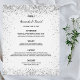 Por favor, note que este menu está no papel folheto e muito fino. Para menus mais espessos (mesmo design) visite nossa loja. Um elegante e glamouroso menu de casamento. Personalize e adicione seus nomes, data e menu de casamento. Um fundo branco chic, decorado com faíscas cintilantes prateadas.