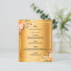 Um cartão de cardápio do estilo boêmico elegante. O ouro cor-de-rosa enche rosas aquosos como decoração. Modelos para seus nomes, data e menu de casamento. Uma falso estrutura dourada e um fundo metálico dourado falso. Letras cinzas escuras coloridas. Fundo: fundo metálico dourado falho.