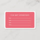 Cartão de compromisso moderno, de moda, salão, rosa vermelho. Um salto colorido para um bom humor. Perfeito para cosmeticista, cabeleireiro, prego, chicotadas e maquilhagem de artistas, fotógrafos e outros provedores de serviços.